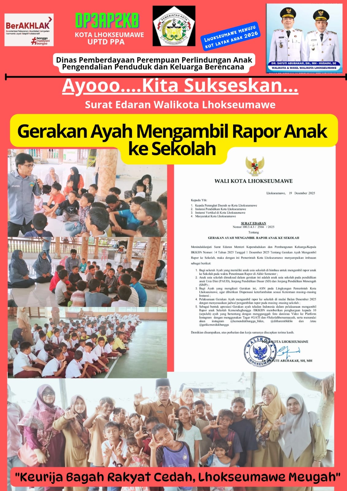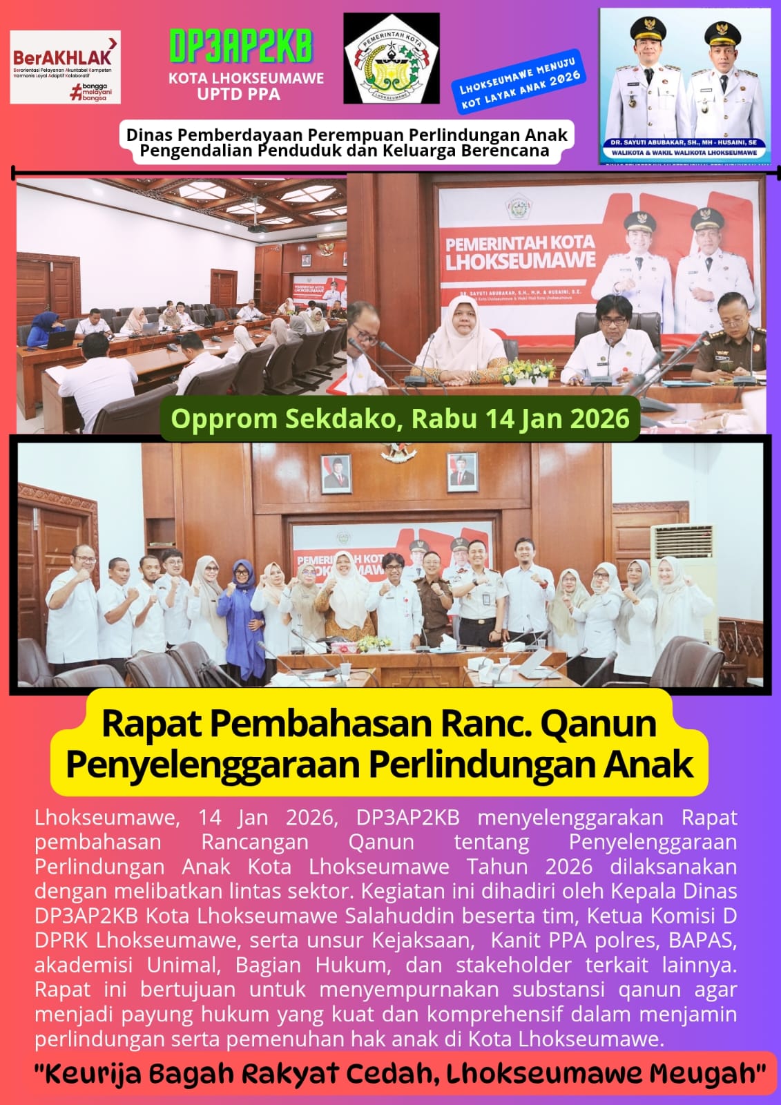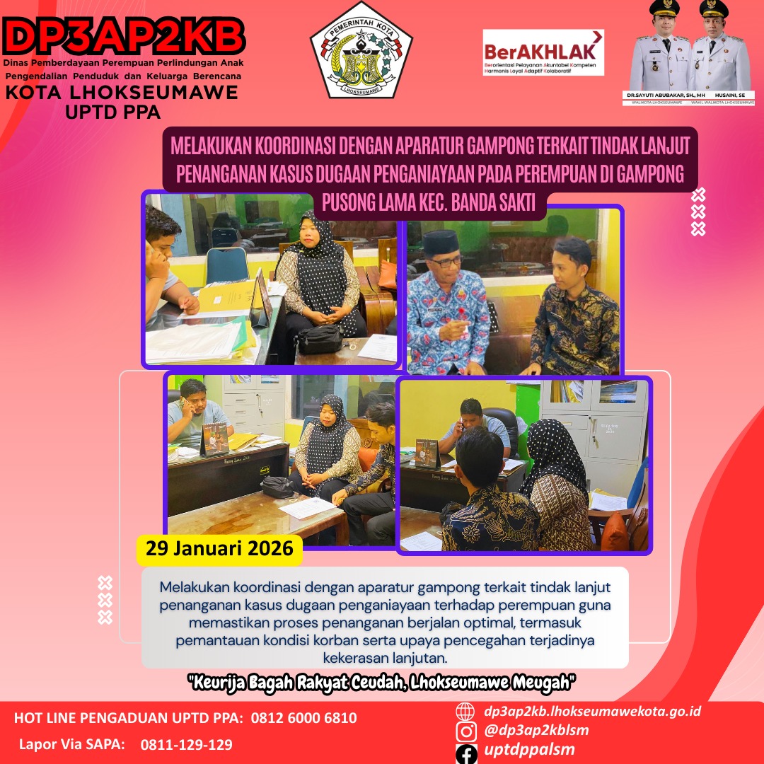 Lhokseumawe, 4 Januari 2026, Kolaborasi antar Dharma Wanita Persatuan (DWP) Pemko Lhokseumawe, Dinas Kesehatan, UPTD PPA dan Forum Anak Lhokseumawe Kreatif (FALAK) dalam kegiatan memberikan bantuan dan…