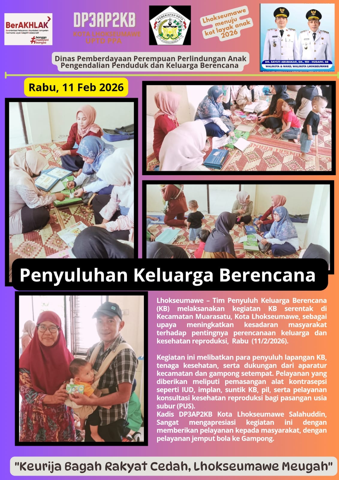 Lhokseumawe, 12 Februari 2026 Tim UPTD PPA Kota Lhokseumawe melakukan pendampingan proses restorative justice kasus penganiayaan korban perempuan di Kejaksaan Negeri Lhokseumawe pada hari kamis tanggal 12 Februari 2026. Proses restorative justice kasus penganiayaan terhadap korban perempuan ini…